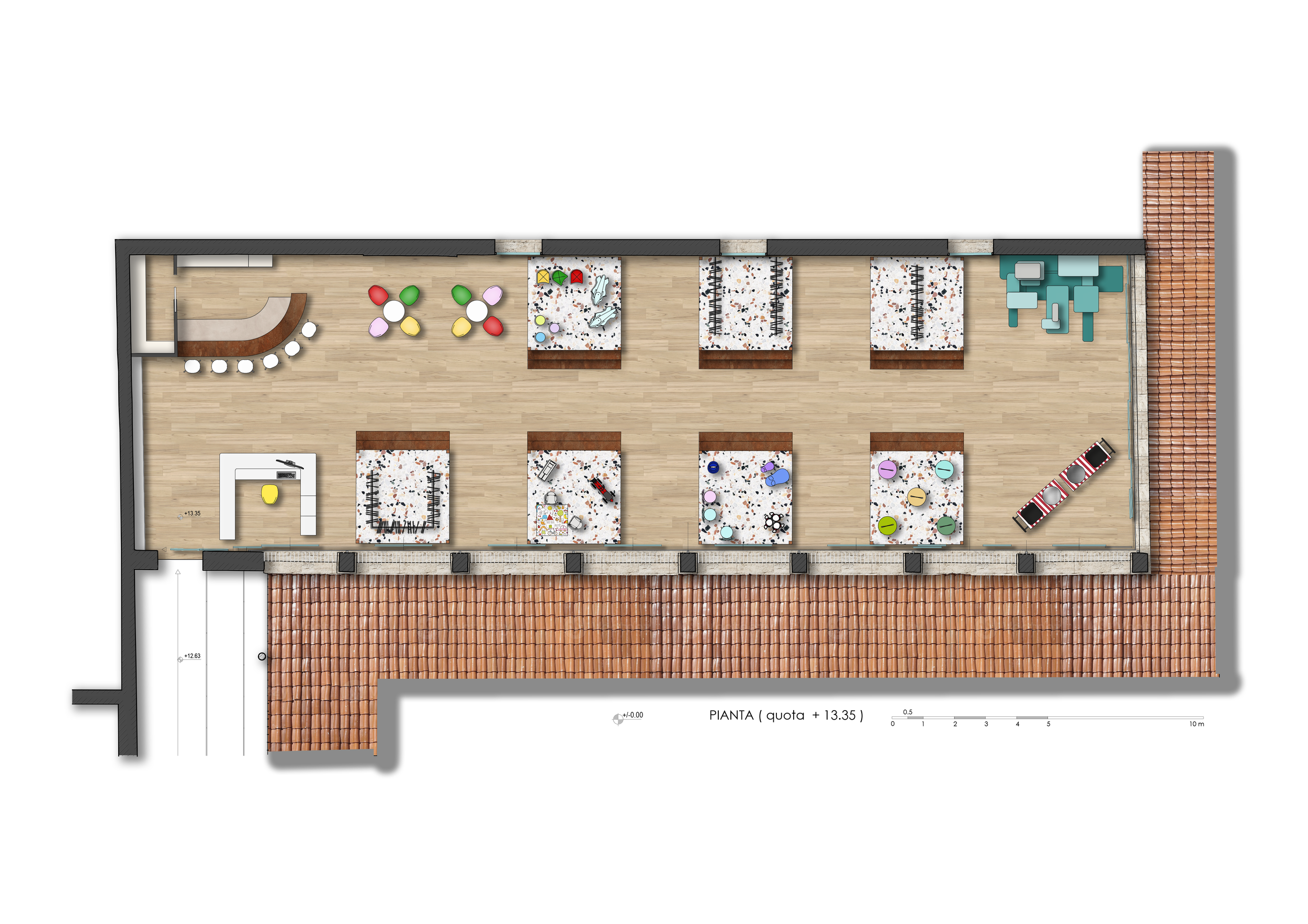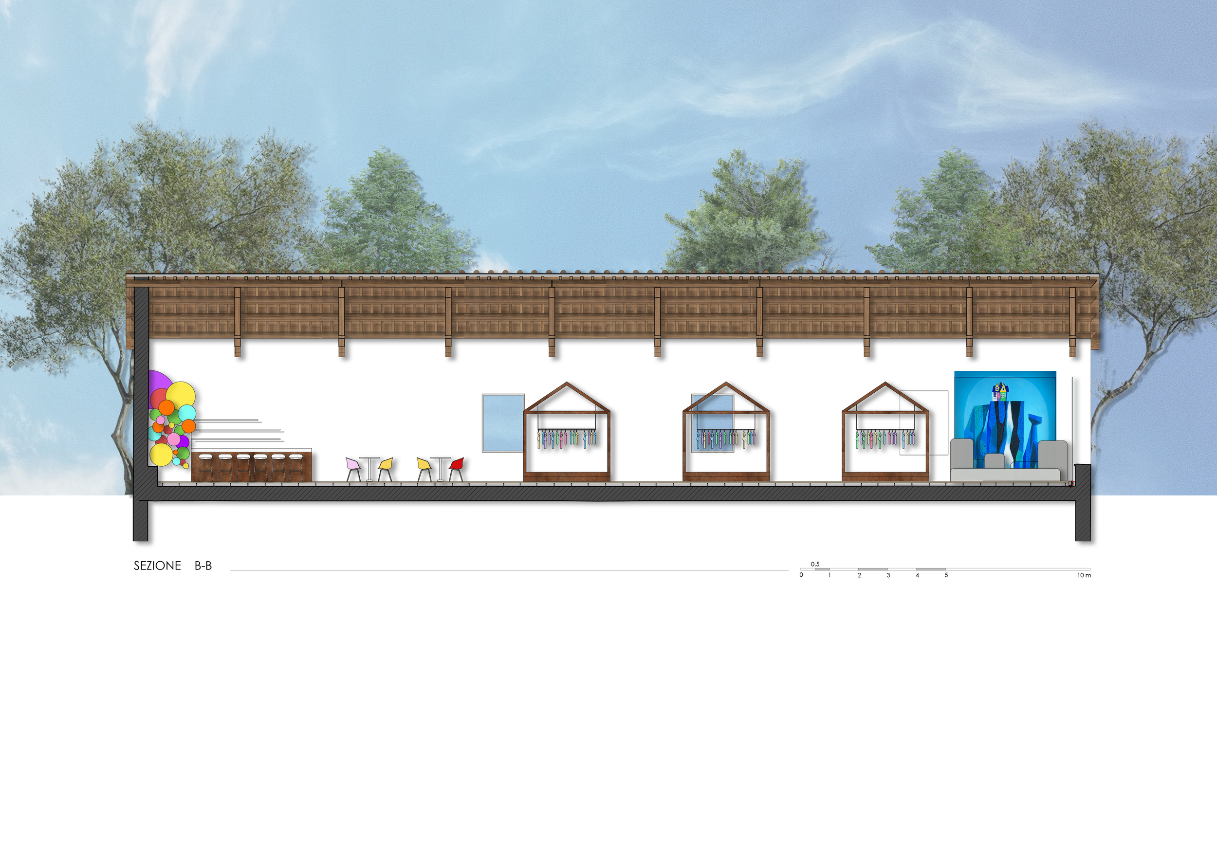 Designed by Filippo Brunelleschi in 1419, the Verone is a place rich in history and charm: originally used as the laundry of the orphanage, it now serves as a perfect meeting point between Renaissance culture and modernity. The project’s main inspiration comes from the iconic animated film UP, beloved by children and adults alike. This cinematic masterpiece delicately addresses profound and universal themes: love for nature, the process of mourning, the importance of intergenerational relationships, the joy of exploring the world, and the idea that it is never too late to achieve your dreams. These values, intrinsically tied to the sensitivity of childhood, guided every design choice.